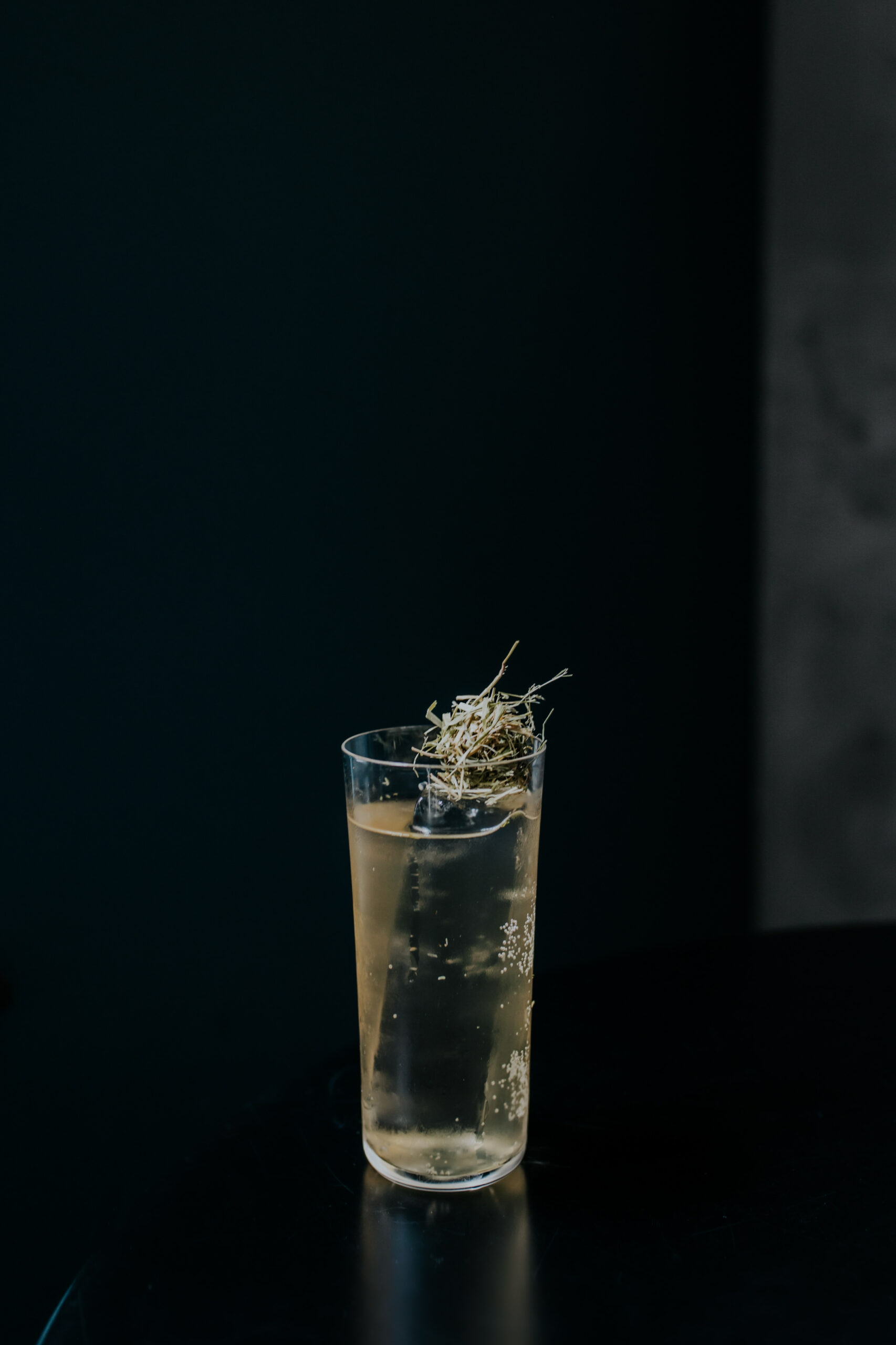 Whisky, calvados Christian Drouin, St-Germain, fleur de sureau, feuille de cassis, baie de batak
